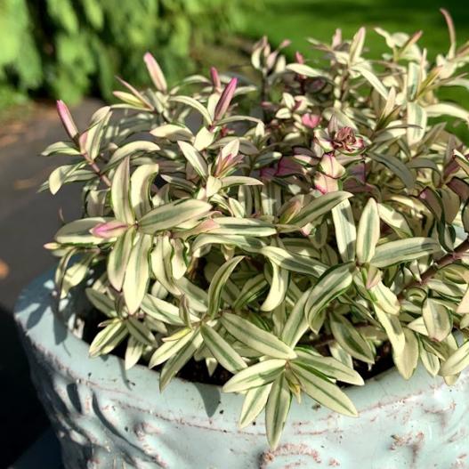 Une belle panachure blanche et verte tout au long de l'année surmontée de jeunes pousses roses. Quelques fleurs bleues en fin de printemps ajoutent à cette plante persitante une note de beauté complémentaire. En massif comme en pot, cette véronique arbustive est une valeur sûre au jardin.
