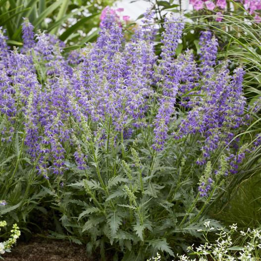 La sauge des bois Feathers Peacock se distingue par son feuillage finement découpé, évoquant un plumage rafiné, apportant une texture légère et élégante au jardin. Très rustique, vraiment vivace et facile à cultiver, cette variété forme de généreux bouquets de fleurs bleu-violet tout l’été, très attractifes pour les pollinisateurs. Idéale en massif, bordure ou potée, elle apprécie une exposition ensoleillée et un sol bien drainé. Une taille après floraison stimule les remontées et maintient un port compact.