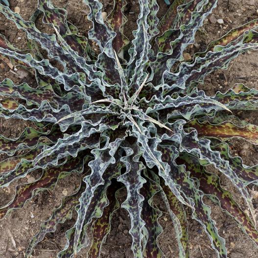 De longues feuilles succulentes argentées, bleu-vert avec des taches presque noires, forment un port bas et près du sol. Comparativement à Chocolate Chips, la variété Mint Chocolate Chip a des feuilles plus larges, des taches plus foncées et des feuilles bleu-argenté.