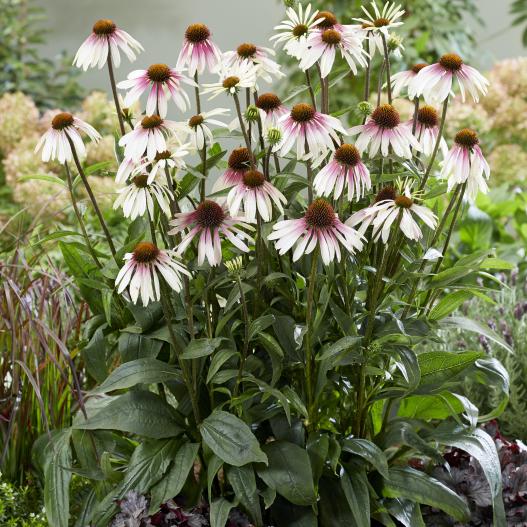 Les fleurs inversées au cœur rose sur les pétales blancs attirent le regard. Ses tiges sont suffisamment fortes pour résister au vent et nombreuses pour provoquer une floraison continue et massive.