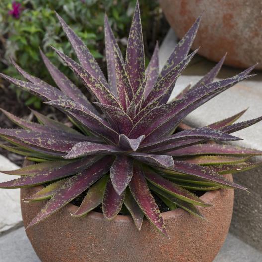 Les feuilles vertes sont fortement tachetées de couleur rouge clair. Elles sont tellement tachetées que les feuilles semblent avoir des bandes rouges solides avec des marges vertes. Un profil relativement bas au port compact.