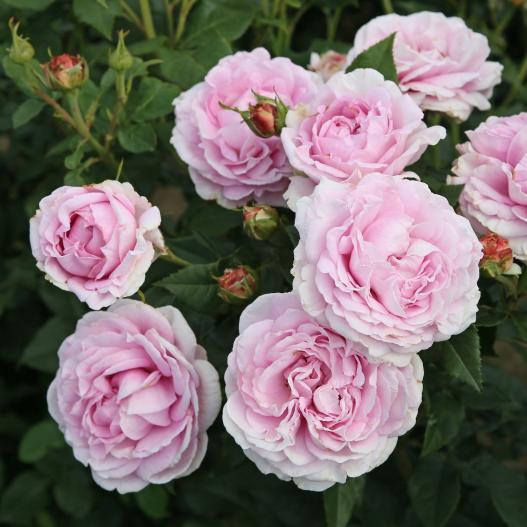 Le rosier Reine Marie est issu d'une mutation du rosier Catherine de Médicis, avec des roses au coloris plus pastel et au parfum puissant et fruité. Il bénéficie des mêmes qualités et montre une excellente résistance aux maladies.