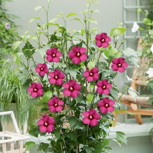 Laissez-vous éclairer par cet hibiscus aux fleurs rose soutenu pendant tout l'été. Il illuminera vos haies et vos jardins grâce à son port étroit. Favorisez-lui un emplacement à l'abri du vent l'hiver.