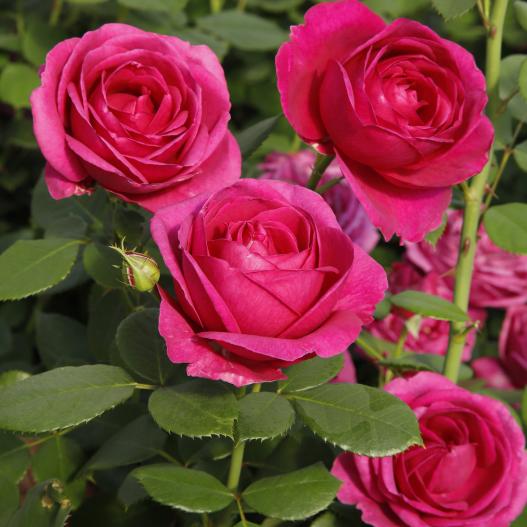 Ce rosier aux couleurs intenses évoque les roses anciennes. Bien résistant aux maladies. Le rosier Pour Elise porte des roses bien pleines et parfumées.