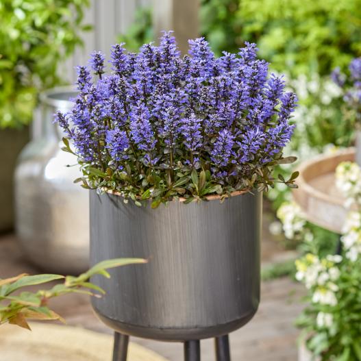 FEATHERED FRIENDS® Noble Nightingale est une version de la bien connue bugle, avec de petites feuilles allongées vert sombre et noir obsidienne ! Au printemps, les fleurs bleu cobalt ressortent du feuillage. Une vivace originale qui trouvera sa place dans un sol frais, à l'abri du soleil de l'après-midi.