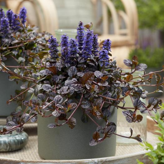 FEATHERED FRIENDS® Fierce Falcon est une nouvelle variété de bugle avec de grandes feuilles arrondies couleur pourpre, presque noir obsidienne ! Au printemps, les fleurs bleu cobalt ressortent du feuillage. Une vivace originale qui trouvera sa place dans un sol frais, à l'abri du soleil de l'après-midi.