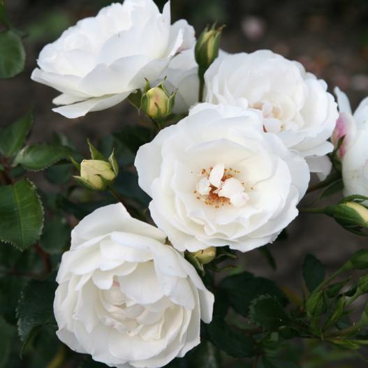 Rosier au port érigé et à la floraison abondante, le rosier Weisse Wolke montre une excellente résistance aux maladies. Les fleurs, blanches au cœur doré, sont semi-doubles et parfumées. Ce rosier a reçu le prix d'honneur à Baden-Baden en 2016. Les cynorrhodons (fuits) sont décoratifs.