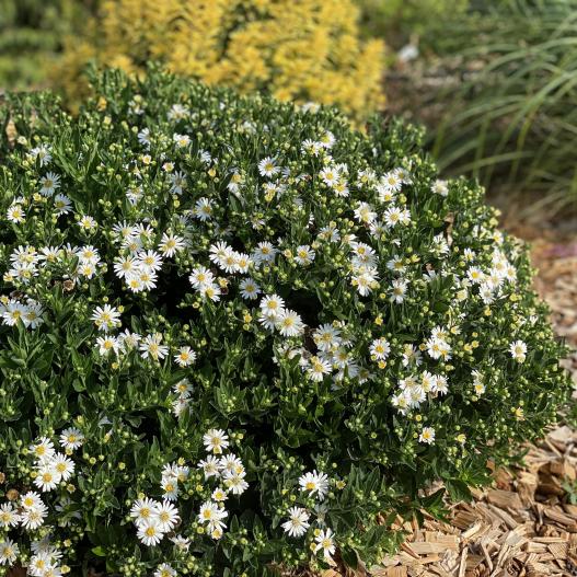 Cet Aster est unique. Il fleurit d'août à octobre sans jamais être sale à la défloraison. Sur les feuilles, pas de traces d'oïdium blanc, si souvent présent sur ce genre. Cette belle plante, facile, aux fleurs de marguerites blanches, se plaît en pots, en bacs et en massifs.