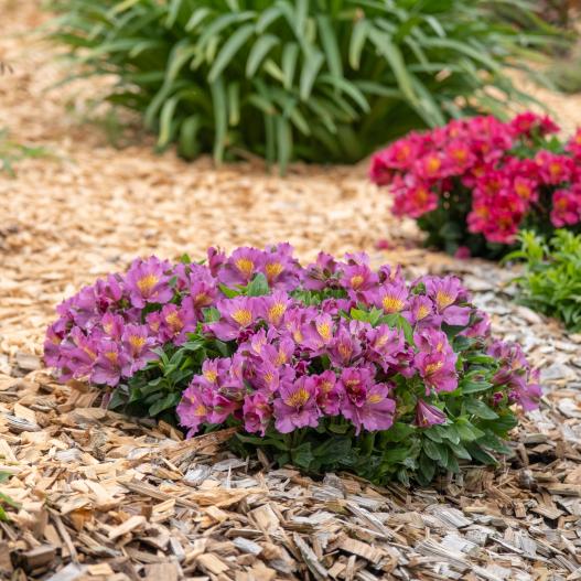 Ce lys des Incas nain a tous les atouts de ses variétés cousines mais avec un port plus compact et des tiges qui se tiennent mieux. Il est également très résistant au gel ! Ses fleurs, abondantes de juin aux gelées, ressemblent à des papillons mauve marqué de jaune-orangé. Grâce à ces qualités, il est idéal pour les potées, mais on peut également l'utiliser en massif ou en bordure.