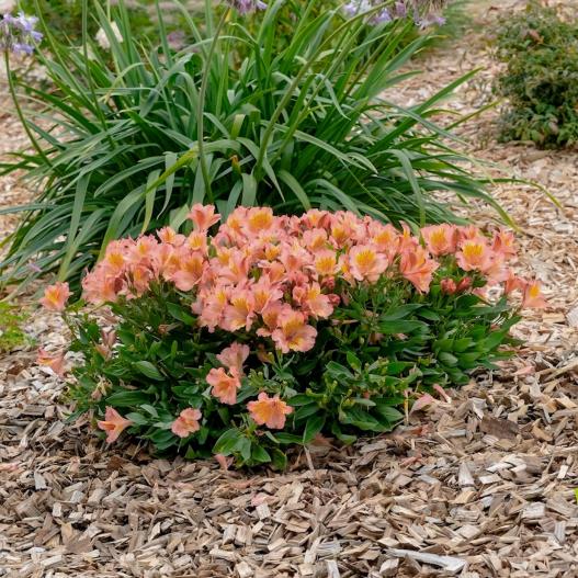 Ce lys des Incas nain a tous les atouts de ses variétés cousines mais avec un port plus compact et des tiges qui se tiennent mieux. Il est également très résistant au gel ! Ses fleurs, abondantes de juin aux gelées, ressemblent à des papillons rose saumon marqué de jaune-orangé. Grâce à ces qualités, il est idéal pour les potées, mais on peut également l'utiliser en massif ou en bordure.