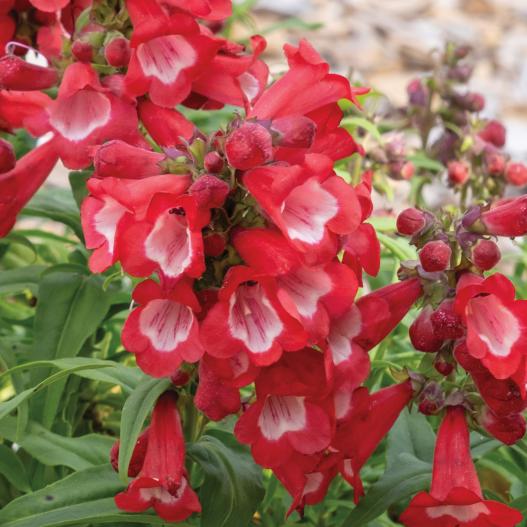 Superbe plante vivace résistante à l'oïdium à utiliser en bordure ou en massif et même en potée. Les fleurs en clochettes rouge vif ont un cœur blanc. Très bonne remontée de la floraison.