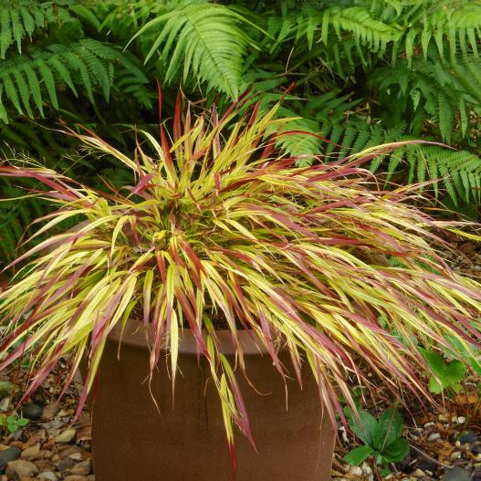 L'herbe du Japon Mulled Wine est un véritable spectacle pour les yeux avec son feuillage tricolore lumineux. Ses feuilles présentent un panachage de jaune, vert clair et vert émeraude, prenant une teinte rouge chaude en fin d'été. Insensible aux maladies et facile à cultiver, elle s'épanouit en sol bien drainé, mi-ombre à plein soleil. Idéale pour massifs, bordures ou pots, cette herbe apporte une touche de couleur japonisante.