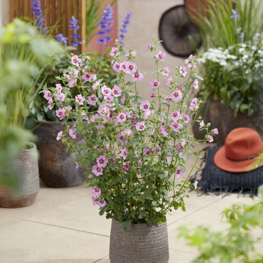 La mauve du Cap Gala est un petit arbuste compact aux grosses fleurs rose fleurissant de juin à octobre. Ses fleurs rose vif légèrement veinées de rouge sont rouge en leur cœur. Mellifère, la mauve du Cap attire les papillons et pollinisateurs. Une fois installée, la mauve du Cap est très résistante à la sécheresse et ne nécessite que peu d’arrosages. C’est une très belle plante pour les terrasses, qui pourra être installée en pleine terre dans les régions aux hivers doux et même être utilisée en haie basse fleurie.