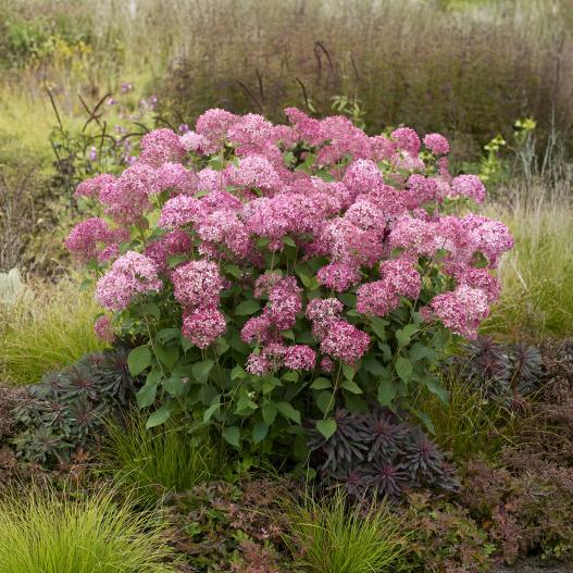 Les fleurs rose foncé de l'hortensia Sorbet sont un bel ajout à la série CANDYBELLE. La plante est un buisson aux nombreuses fortes ramifications. La floraison estivale est massive et représente un spectacle.