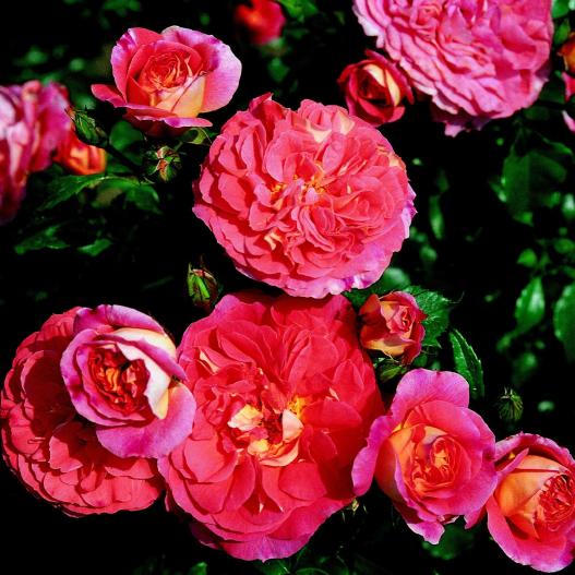 Élégante floraison changeante et lumineuse de fleurs pleines et nombreuses. Ce rosier au feuillage sain est très remontant et reste en feuilles jusqu'à décembre. Il possède les qualités des fleurs anglaises et d'autrefois ainsi que la résistance aux maladies des rosiers d'aujourd'hui reconnue par la norme ADR. Sa vigueur moyenne en fait un rosier pour tous les jardins et toutes les utilisations. Mariez-le avec des arbustes aux tons jaunes pour un bel effet. son parfum léger et acidulé prendra son effet en vase où sa tenue sera remarquable. En bref : un rosier (presque) parfait...