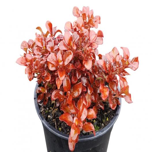 Feuilles rondes, coriaces et luisantes rouge ardent. Ce cocktail acidulé rend cette plante lumineuse et gaie en toute circonstance. Elle sera à l'aise dans toutes les compositions aux couleurs chaudes. Sa forme naturelle buissonnante et compacte n'est pas exigeante en entretien. Avec ces qualités, cette plante trouve une place dans tous les types de jardins.