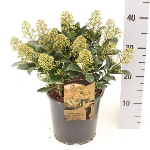 Fascination® possède de grands épis de fleurs bien remplis. Colorés, les boutons couleur vert-jaune tournent au vert-bronze et gardent leur couleur longtemps avant de progressivement s’ouvrir sur des fleurs blanches. Son port est compact tout en restant de taille raisonnable. Le Skimmia GOLD SERIES® Fascination® est adapté à une plantation dans le jardin accompagné d’autres plantes de terre de bruyère, mais aussi en pot ou en fleurs coupées.