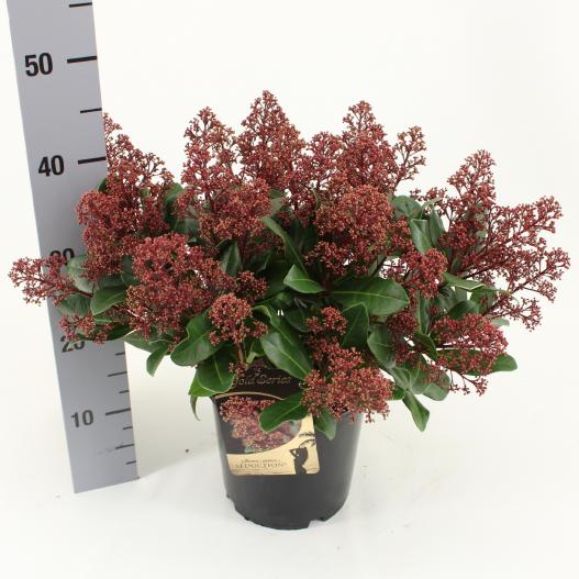 Seduction® possède de grands épis de fleurs bien remplis. Colorés, les boutons gardent leur couleur pourpre longtemps avant de progressivement s’ouvrir sur des fleurs blanches. Plus évasé que les autres variétés de la série Gold Series®, le Skimmia Seduction® est adapté à une plantation dans le jardin accompagné d’autres plantes de terre de bruyère, mais aussi en pot ou en fleurs coupées.