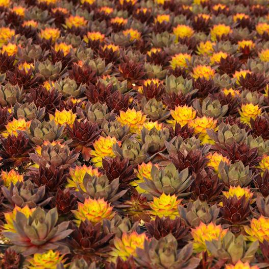 Ce trio de joubarbes CHICK CHARMS® se compose des variétés Gold Nugget, Plum Parfait et Strawberry Kiwi pour former une association chaleureuse de brun, pourpre et jaune-orangé. Une potée instantanée pour donner vie à vos compositions, pots et rocailles.
