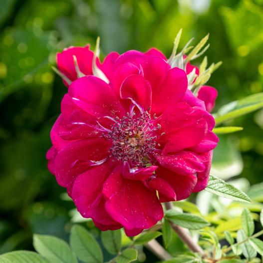 Take It Easy est un rosier rugueux qui séduit par sa floraison abondante de fleurs semi-doubles d'un rouge carmin éclatant. La particularité de ce rosier réside dans son absence d'épines sur les tiges, le rendant agréable à manipuler. Seules quelques rares épines subsistent sous les feuilles. Il offre une floraison remontante tout au long de l'été et embaume votre jardin d'un parfum enivrant. Facile à cultiver et compact, plantez-le en sol bien drainé et en plein soleil pour une performance optimale. Avec peu d'entretien, c'est un choix idéal pour apporter couleur et parfum à votre jardin en toute sécurité.