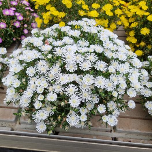 Ajoutez de l'élégance au jardin avec le Delosperma SUNDIAMONDS White. Compacte et richement ramifiée, il offre une profusion de fleurs blanches au cœur crème, créant un spectacle enchanteur. Avec une hauteur basse de 10-15 cm, cette plante est parfaite pour les petits pots, les bordures de vivaces et les rocailles. Sa floraison ininterrompue du début de l'été à l'automne ajoute une touche lumineuse. Facile à entretenir, plantez-la dans un sol bien drainé pour profiter de cette beauté florale immaculée tout au long de la saison.
