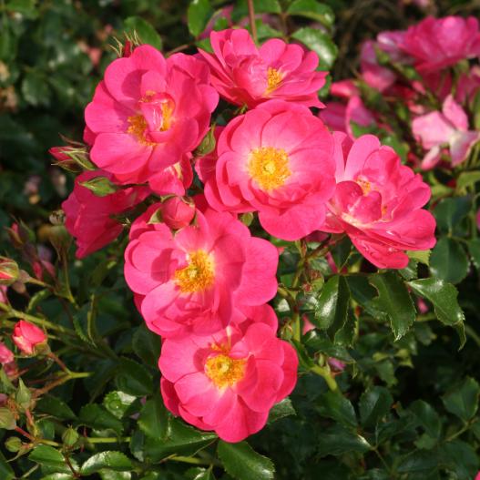 Véritable tapis coloré, il se pare tout l'été de fleurs rose fluo émaillées de blanc. Idéal pour fleurir des talus et massifs ensoleillés. Son feuillage sain et résistant aux maladies lui permet dêtre présent de mars à Noël ! Il a obtenu l'ADR, qui confirme sa très grande résistance aux maladies ainsi que sa floribondité.