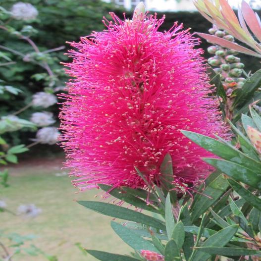 Compact et florifère, le rince-bouteille Amarette illumine le jardin de mai à juillet avec ses spectaculaires fleurs en brosse rouge-rose. Son feuillage persistant, aromatique au froissement, forme un bel arbuste buissonnant, idéal en pot, palissé ou intégré dans un massif exotique. Rustique jusqu’à -12 °C, il prospère en plein soleil, dans un sol bien drainé, acide à neutre. Protégez-le des vents froids en hiver et taillez légèrement après floraison pour stimuler sa croissance et sa floraison.