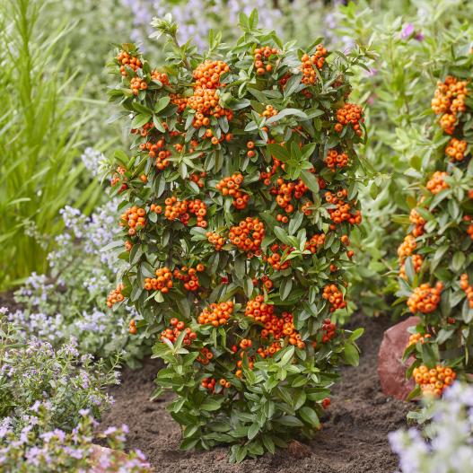 Le buisson ardent Orange Star se distingue par ses grandes baies oranges abondantes qui illuminent les rameaux en automne. Ce cultivar sans épines est parfait pour les jardins familiaux. Il porte ses fleurs et fruits sur le bois de 2 ans, garantissant une floraison et fructification annuelle régulière. Plantez-le en plein soleil ou à mi-ombre pour une croissance optimale et profitez de son éclat au printemps puis durant tout l'automne.