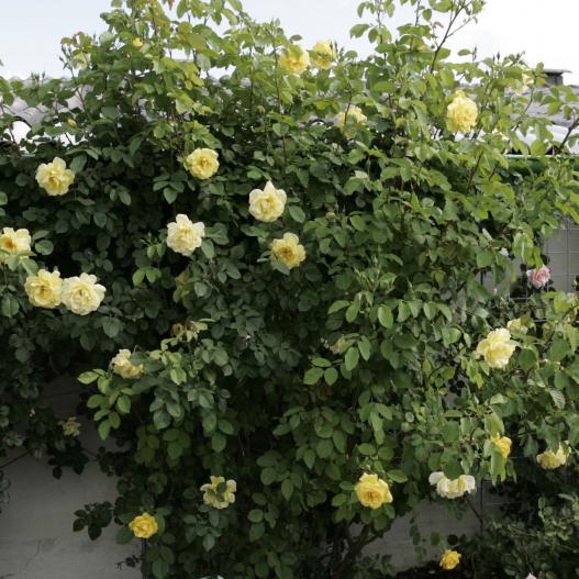 Une nouveauté dans les rosiers grimpants qui se fait remarquer par son feuillage très sain et sa croissance vigoureuse. De coloris jaune d'or passant à jaune pur avec un parfum frais de citron. Un des rares rosiers jaunes grimpants élu à l'ADR, ce qui illustre sa résistance naturelle aux maladies et son abondante floraison remontante. Grâce à sa vigueur exceptionnelle, il est possible de ne le tailler que tous les 5 ans très court, ce qui simplifie la taille du rosier grimpant.