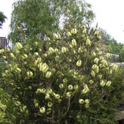 Le rince-bouteille Honeypot se distingue par ses superbes fleurs jaune-vert en forme de brosse, qui illuminent le jardin de mai à juillet. Son feuillage persistant, vert foncé et aromatique, dégage un délicat parfum citronné lorsqu’on le froisse. Cet arbuste compact s’adapte en massif, en pot ou palissé sur un treillis. Plantez-le en plein soleil, dans un sol bien drainé et abrité du vent. Rustique jusqu’à -12 °C, il résiste aux hivers doux en pleine terre.