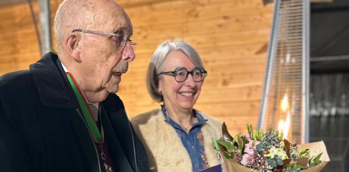 À ses côtés sur la photo se tient Claude Leforestier, ancien directeur de l’école horticole de La Mouillère à Orléans où Valérie a enseigné, et grand militant du végétal. Pédagogue passionné, il a inspiré des générations de professionnels par son engagement et son humanité. Sa présence auprès de Valérie est un beau clin d’œil à ces liens qui se tissent entre ceux qui, comme eux, ont consacré leur vie à transmettre et faire rayonner l’horticulture.